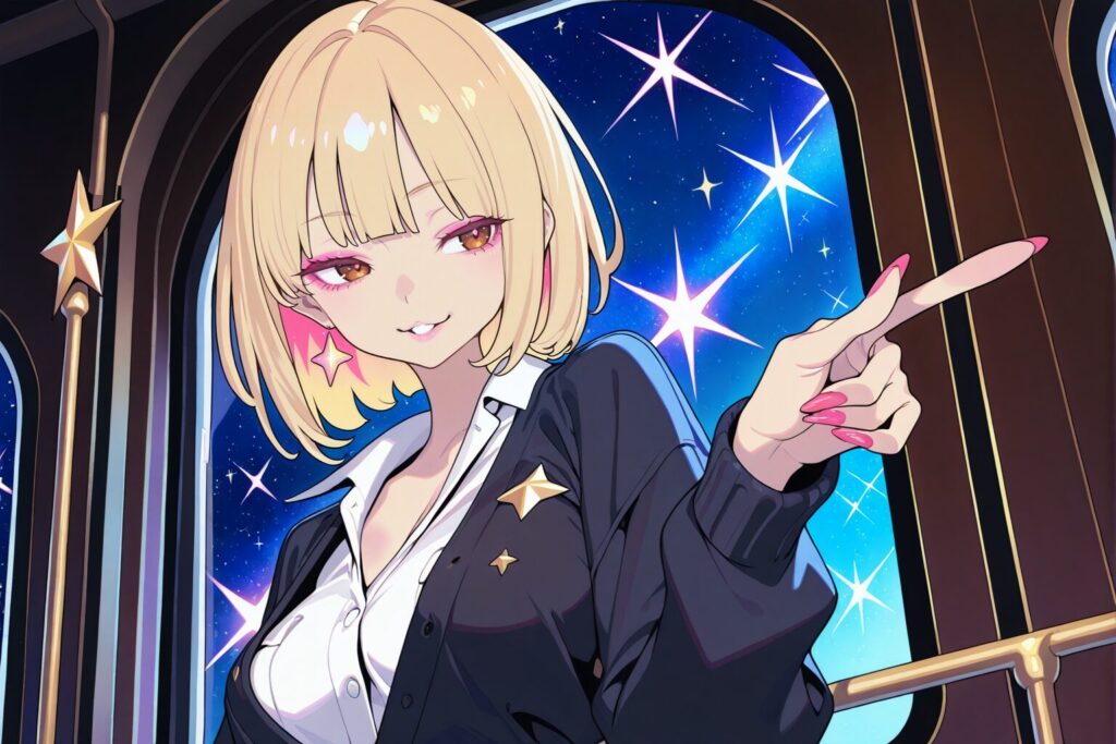 列車は、透き通るような青い石の線路を走り、窓からは星座や銀河のきらめき、そして幻想的な世界が次々と現れます。